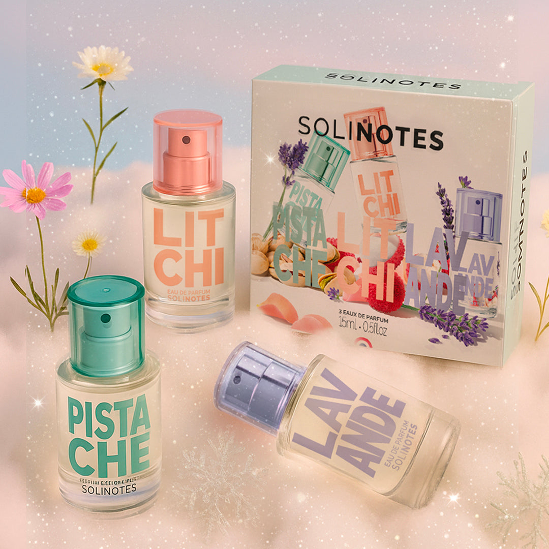 Ce coffret Feel Good contient 3 mini Eaux De Parfum Solinotes : des fragrances délicates et enivrantes à emporter partout !